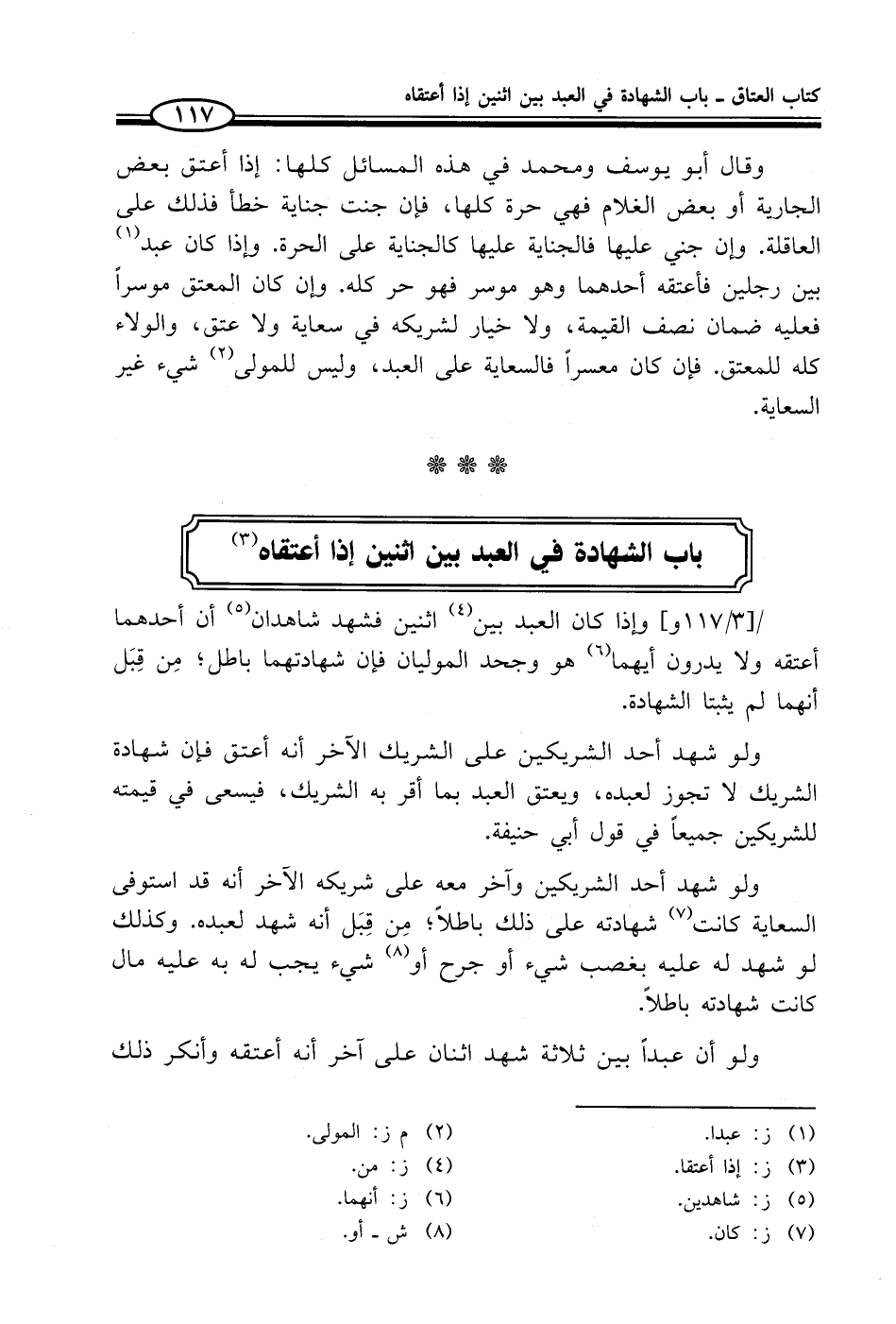 باب الشهادة في العبد بين اثنين إذا أعتقاه (¬3)