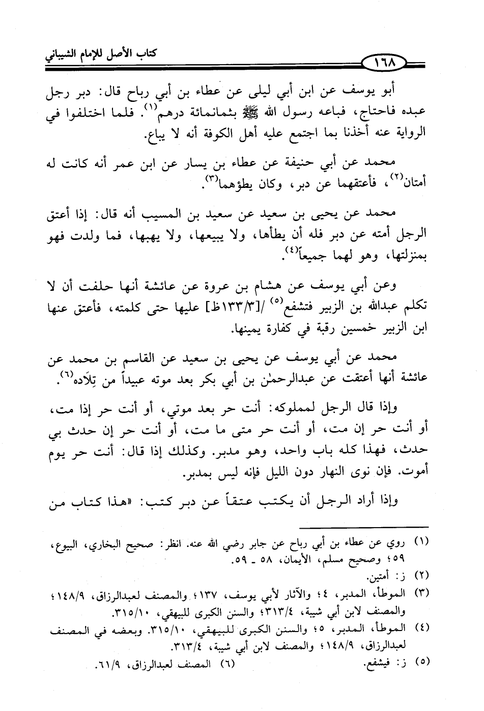 (¬3) الموطأ، المدبر، 4؛ والآثار لأبي يوسف، 137؛ والمصنف لعبد الرزاق، 9/ 148؛ والمصنف لابن أبي شيبة، 4/ 313؛ والسنن الكبرى للبيهقي، 10/ 315.