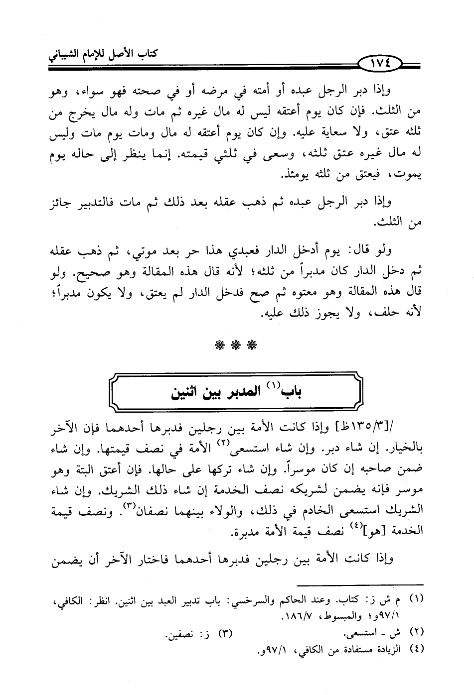 (¬1) م ش ز: كتاب. وعند الحاكم والسرخسي: باب تدبير العبد بين اثنين. انظر: الكافي، 1/ 97 و؛ والمبسوط، 7/ 186.