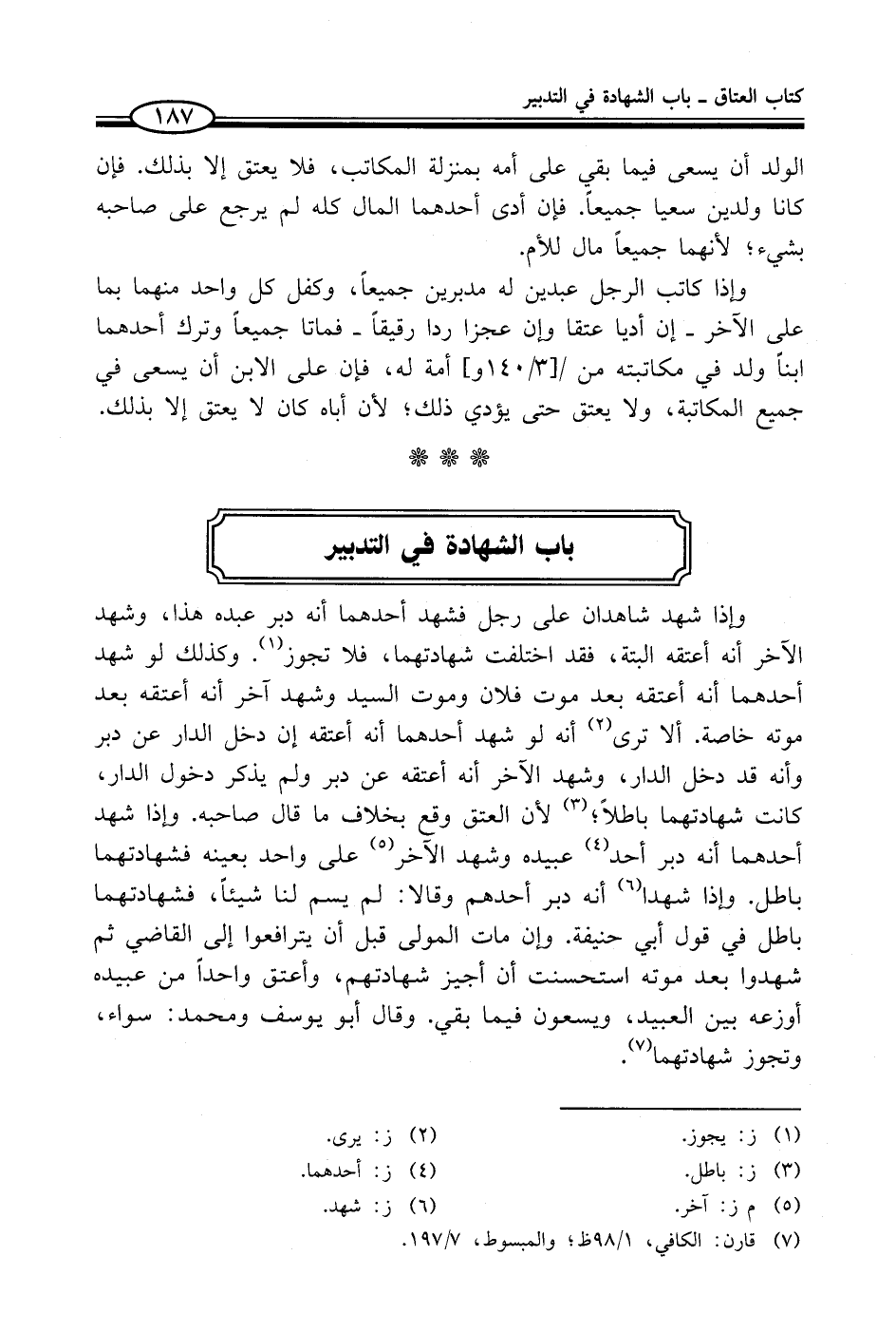 (¬7) قارن: الكافي، 1/ 98 ظ؛ والمبسوط، 7/ 197.