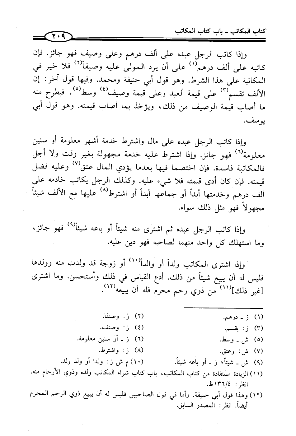 (¬11) الزيادة مستفادة من كتاب المكاتب، باب كتاب شراء المكاتب ولده وذوي الأرحام منه. انظر: 4/ 136 ظ.