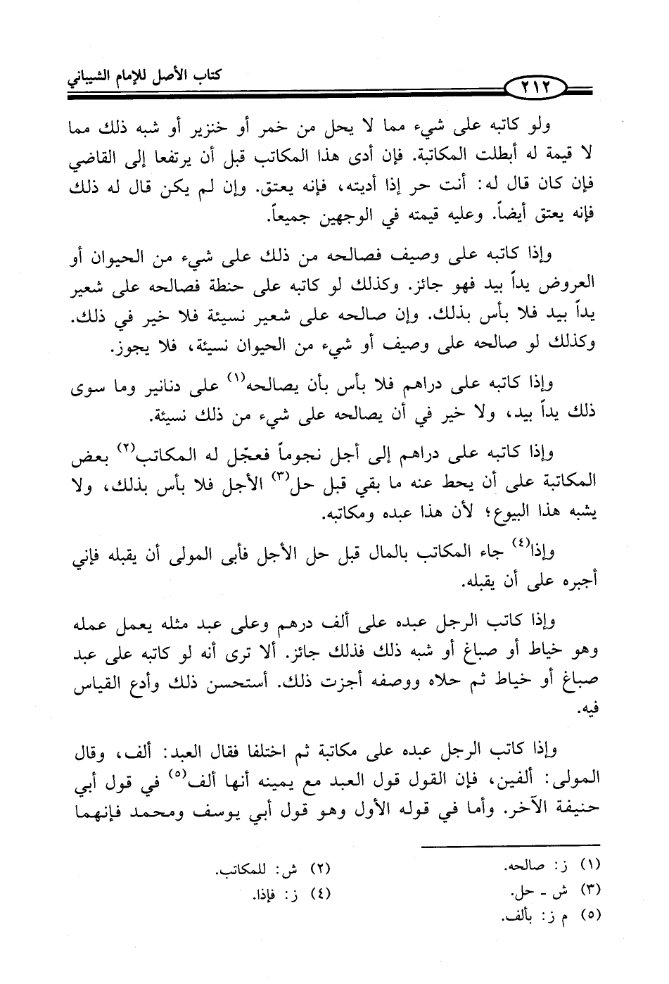 وإذا كاتب الرجل عبده على مكاتبة ثم اختلفا فقال العبد: ألف، وقال المولى: ألفين، فإن القول قول العبد مع يمينه أنها ألف (¬5) في قول أبي حنيفة الآخر. وأما في قوله الأول وهو قول أبي يوسف ومحمد فإنهما