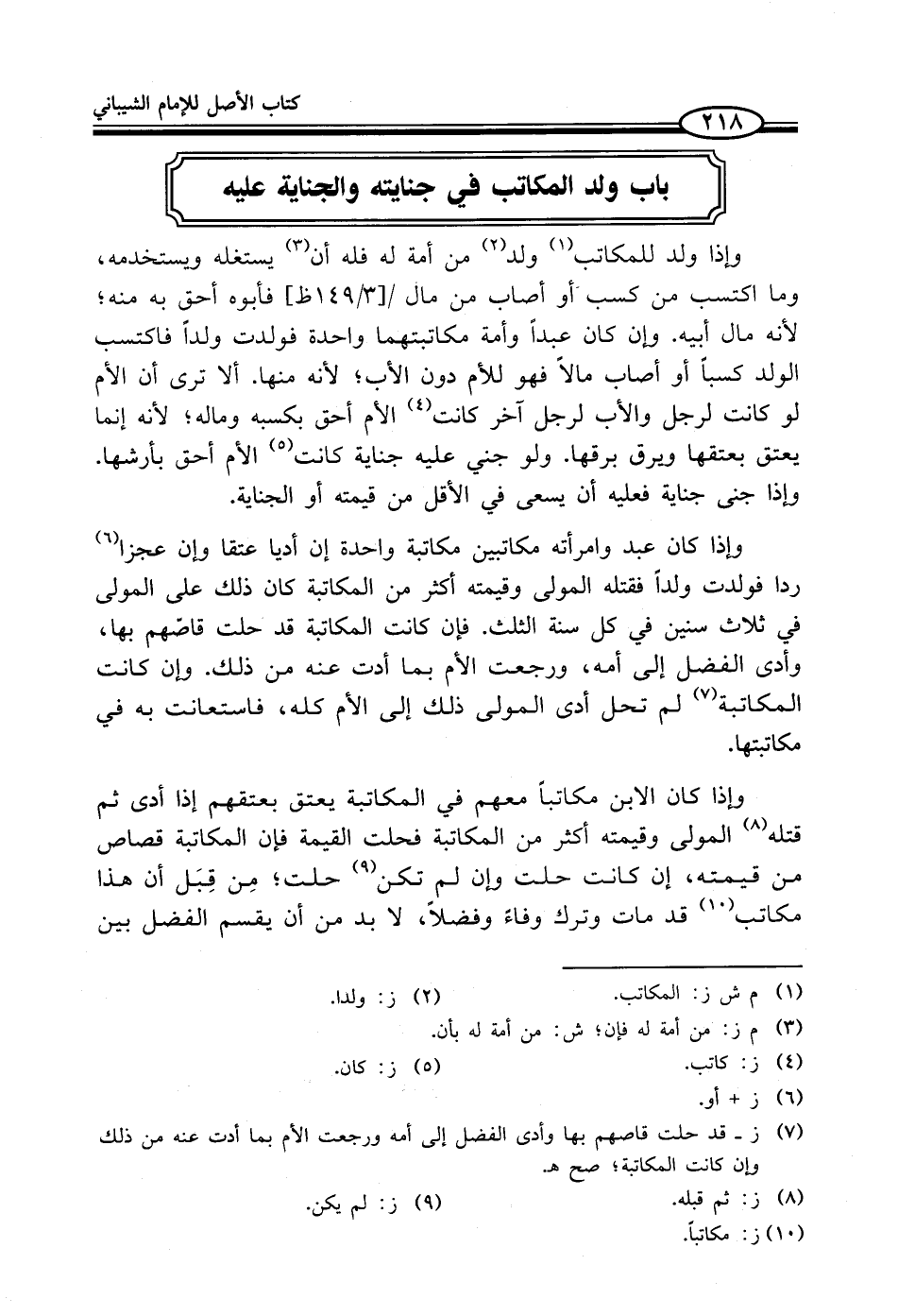 (¬7) ز - قد حلت قاصهم بها وأدى الفضل إلى أمه ورجعت الأم بما أدت عنه من ذلك وإن كانت المكاتبة؛ صح هـ.