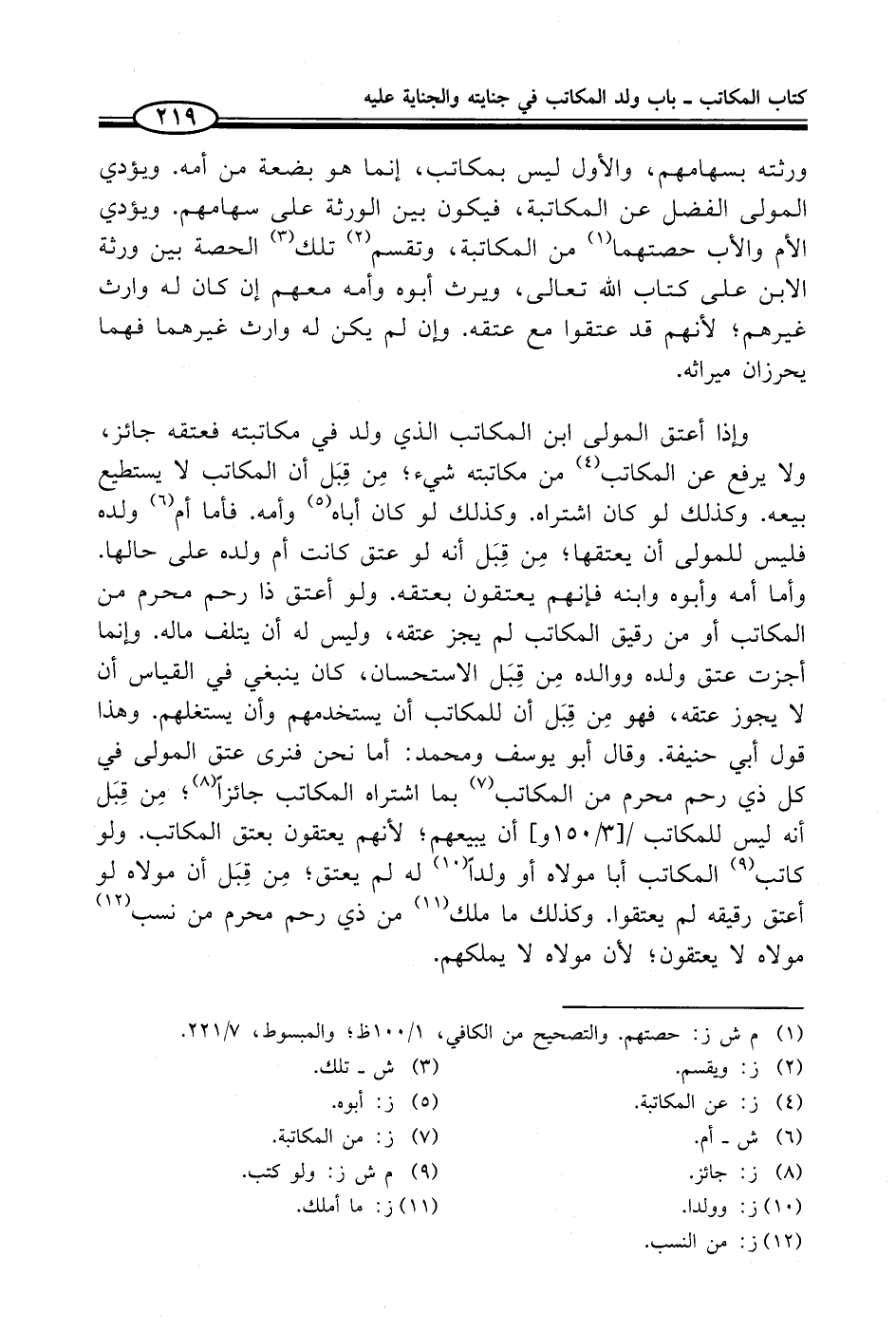(¬1) م ش ز: حصتهم. والتصحيح من الكافي، 1/ 100 ظ؛ والمبسوط، 7/ 221.
