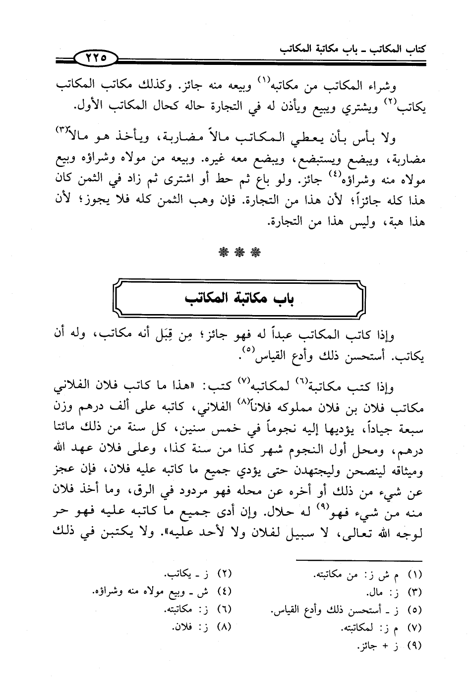وشراء المكاتب من مكاتبه (¬1) وبيعه منه جائز. وكذلك مكاتب المكاتب يكاتب (¬2) ويشتري ويبيع ويأذن له في التجارة حاله كحال المكاتب الأول.