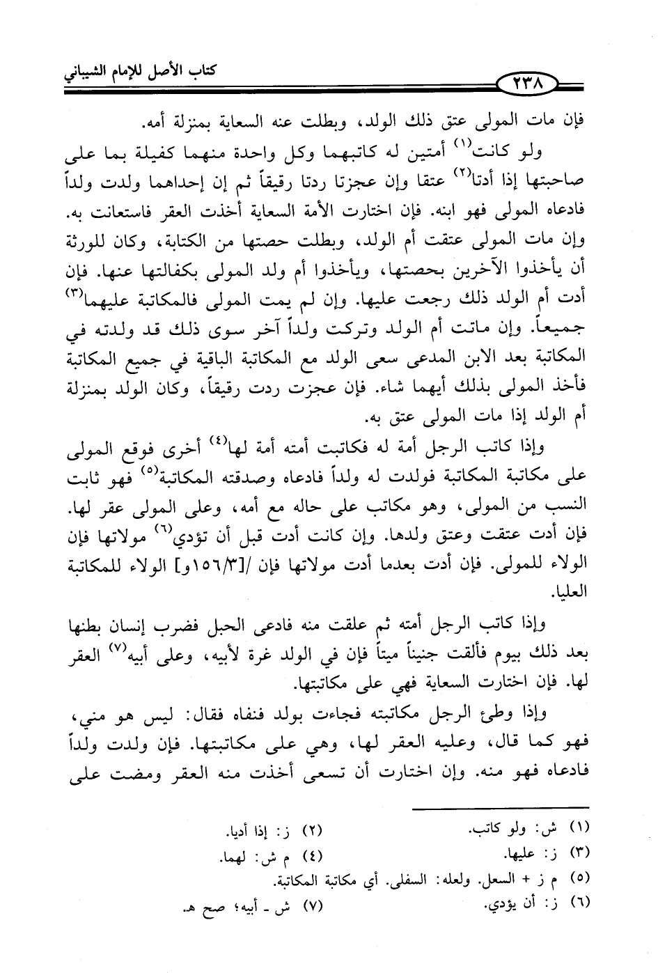 (¬5) م ز + السعل. ولعله: السفلى. أي مكاتبة المكاتبة.