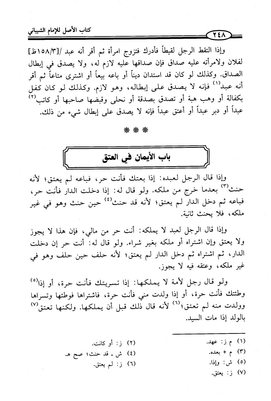 وإذا التقط الرجل لقيطاً فأدرك فتزوج امرأة ثم أقر أنه عبد لفلان ولامرأته عليه صداق فإن صداقها عليه لازم له، ولا يصدق في إبطال الصداق. وكذلك لو كان قد استدان ديناً أو باعه بيعاً أو اشترى متاعاً ثم أقر أنه عبد (¬1) فإنه لا يصدق على إبطاله، وهو لازم. وكذلك لو كان كفل بكفالة أو وهب هبة أو تصدق بصدقة أو نحلى وقبضها صاحبها أو كاتب (¬2) عبداً أو دبر عبداً أو أعتق عبداً فإنه لا يصدق على إبطال شيء من ذلك.
