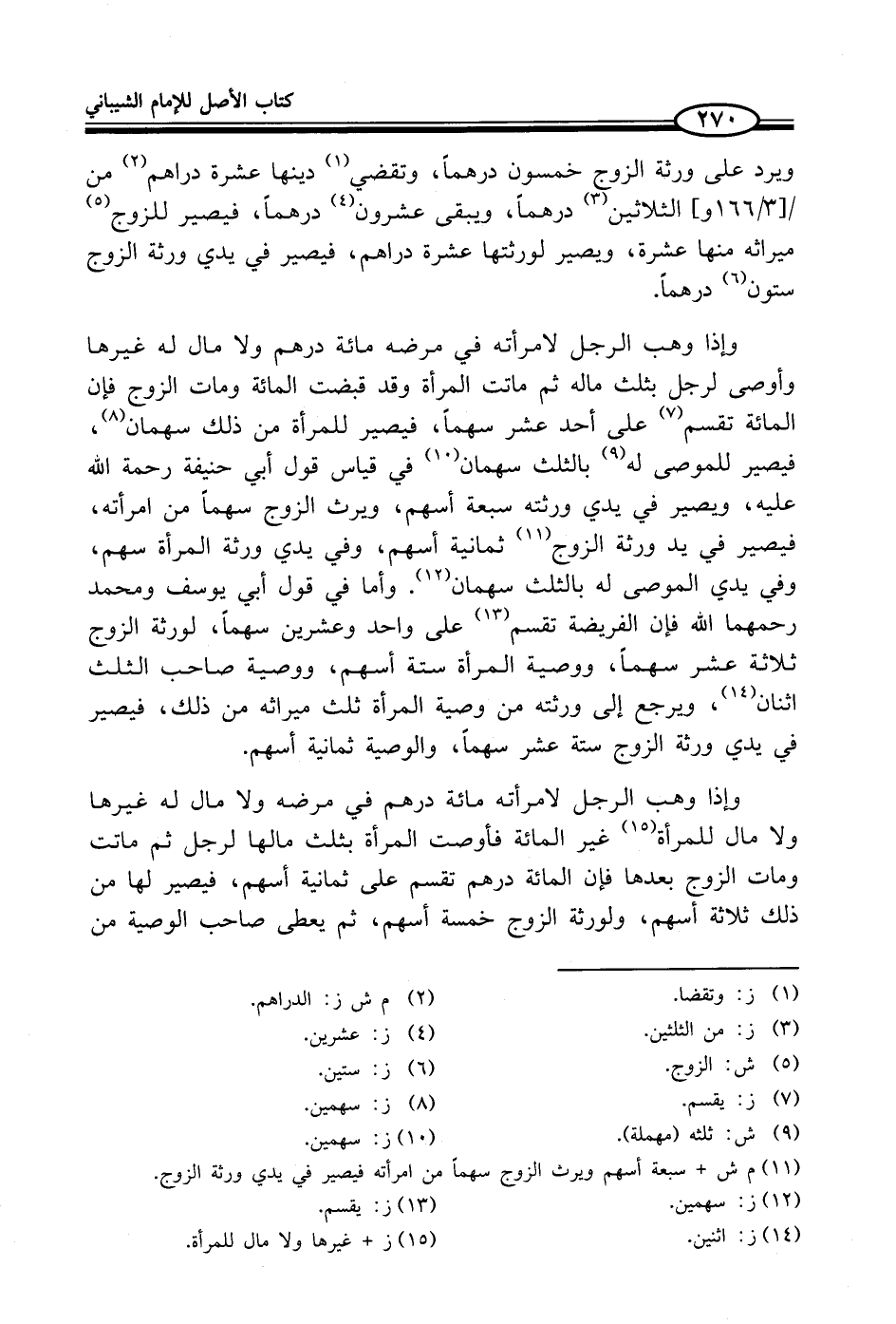 (¬11) م ش + سبعة أسهم ويرث الزوج سهماً من امرأته فيصير في يدي ورثة الزوج.
