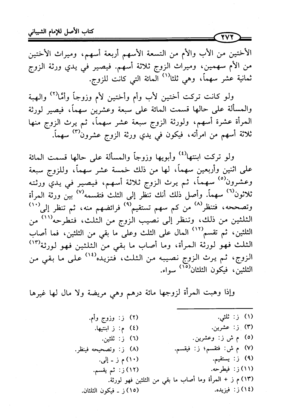 (¬13) ز + المرأة وما أصاب ما بقي من الثلثين فهو لورثة.