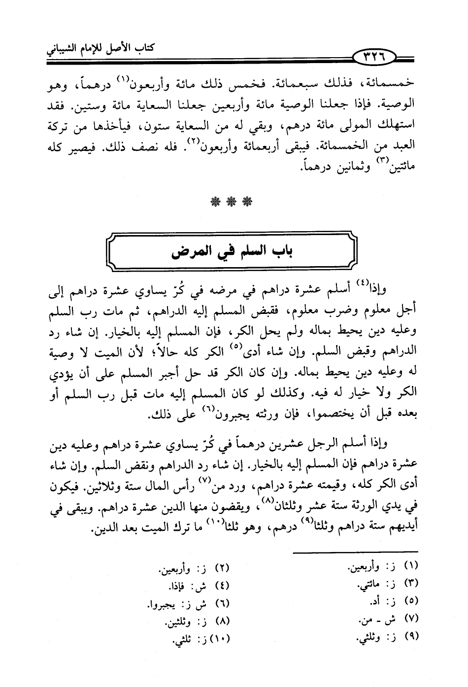 وإذا أسلم الرجل عشرين درهماً في كُرّ يساوي عشرة دراهم وعليه دين عشرة دراهم فإن المسلم إليه بالخيار. إن شاء رد الدراهم ونقض السلم. وإن شاء أدى الكر كله، وقيمته عشرة دراهم، ورد من (¬7) رأس المال ستة وثلاثين. فيكون في يدي الورثة ستة عشر وثلثان (¬8)، ويقضون منها الدين عشرة دراهم. ويبقى في أيديهم ستة دراهم وثلثا (¬9) درهم، وهو ثلثا (¬10) ما ترك الميت بعد الدين.