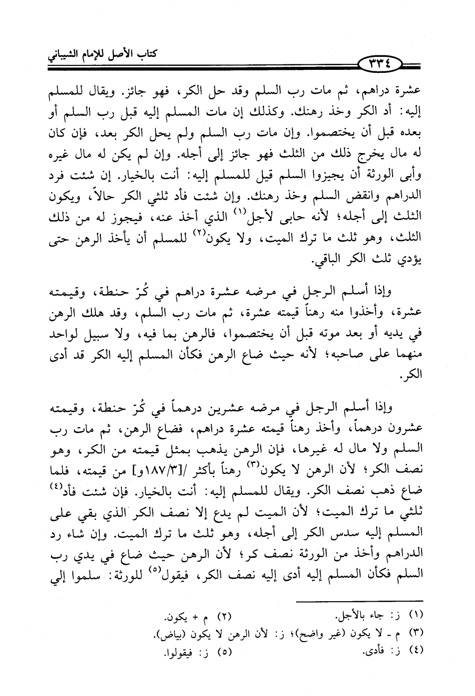 (¬3) م - لا يكون (غير واضح)؛ ز: لأن الرهن لا يكون (بياض).