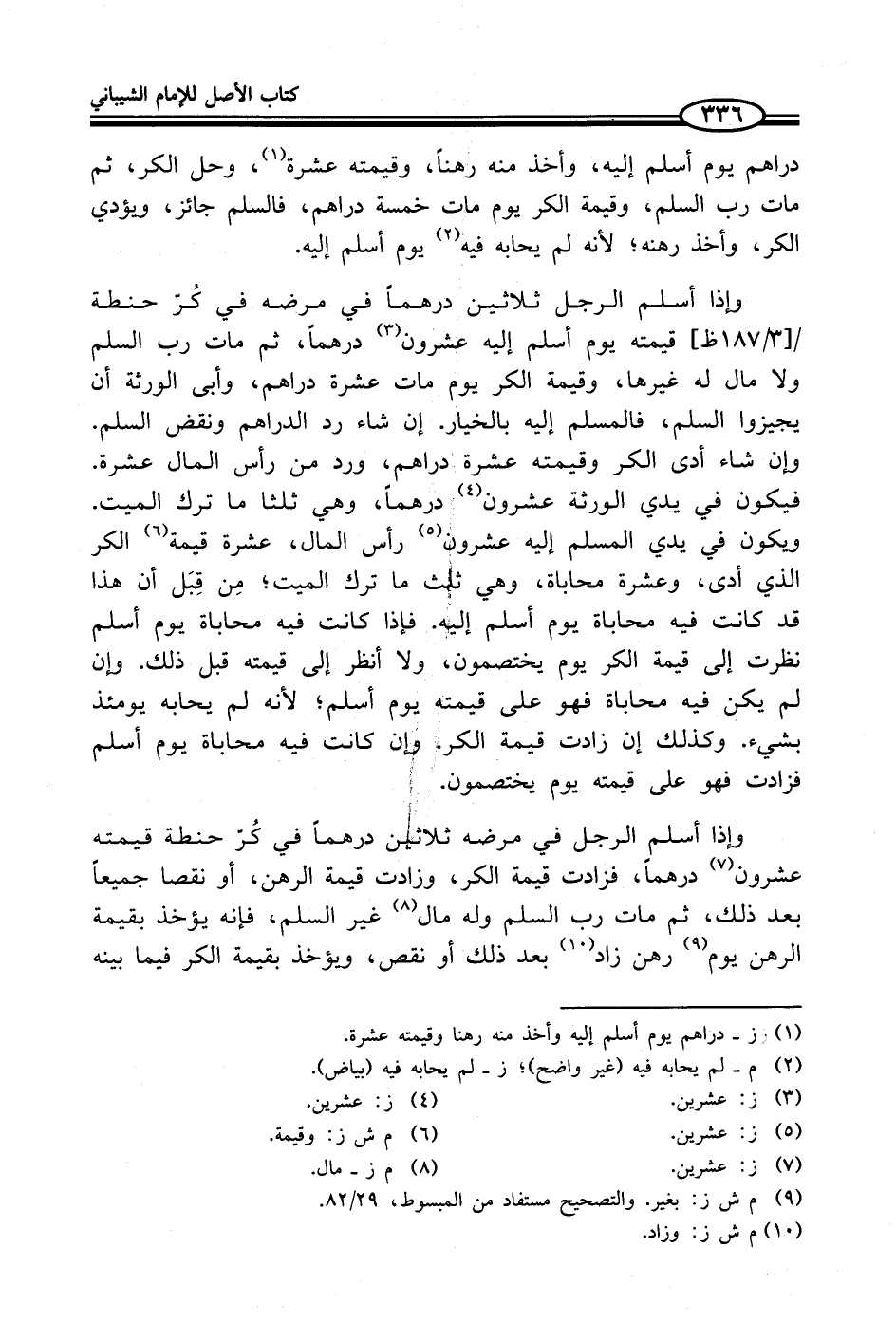 (¬1) ز - دراهم يوم أسلم إليه وأخذ منه رهنا وقيمته عشرة.