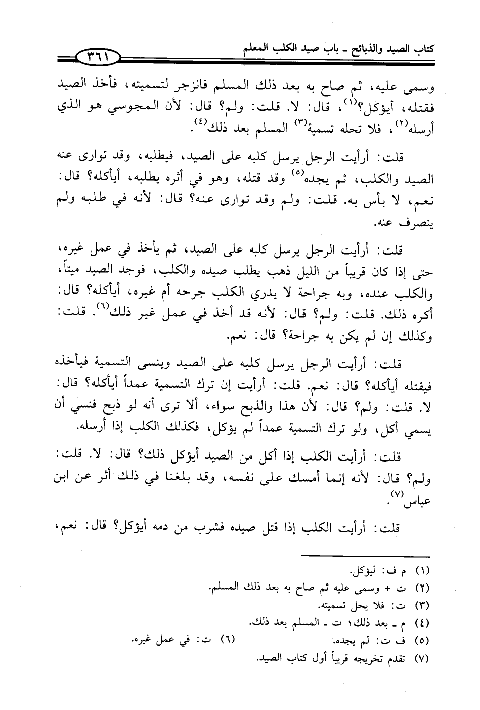 (¬7) تقدم تخريجه قريباً أول كتاب الصيد.