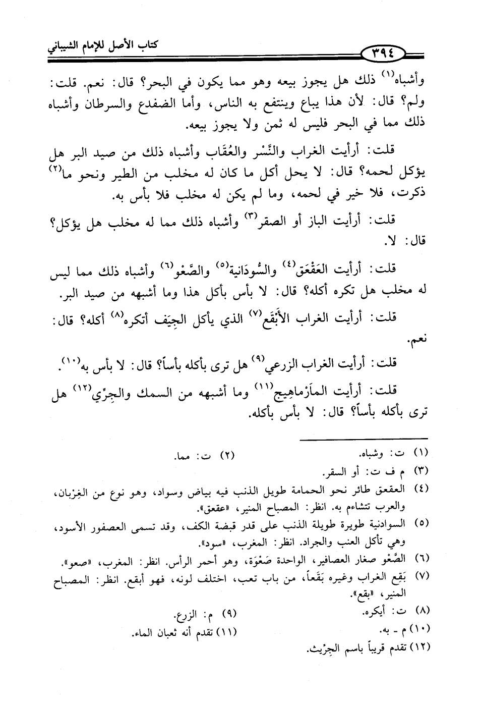 قلت: أرأيت العَقْعَق (¬4) والسُّودَانية (¬5) والصَّعْو (¬6) وأشباه ذلك مما ليس له مخلب هل تكره أكله؟ قال: لا بأس بأكل هذا وما أشبهه من صيد البر. قلت: أرأيت الغراب الأَبْقَع (¬7) الذي يأكل الجِيَف أتكره (¬8) أكله؟ قال: نعم.