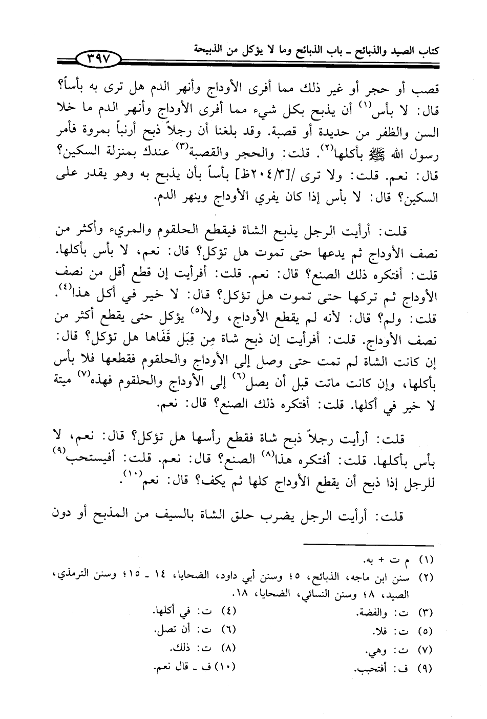 (¬2) سنن ابن ماجه، الذبائح، 5؛ وسنن أبي داود، الضحايا، 14 - 15؛ وسنن الترمذي، الصيد، 8؛ وسنن النسائي، الضحايا، 18.