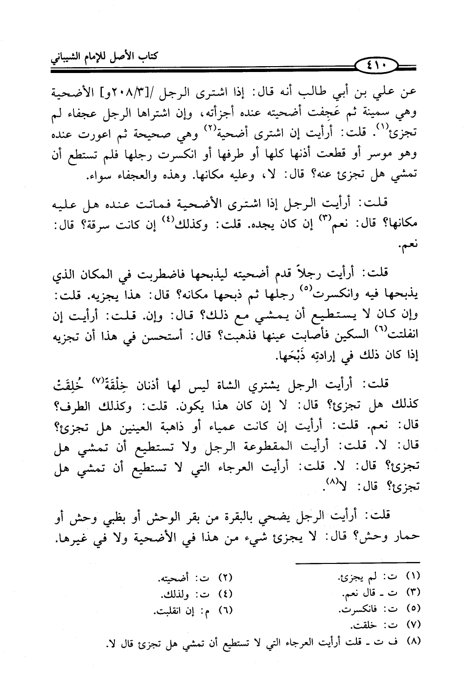 (¬8) ف ت - قلت أرأيت العرجاء التي لا تستطيع أن تمشي هل تجزئ قال لا.