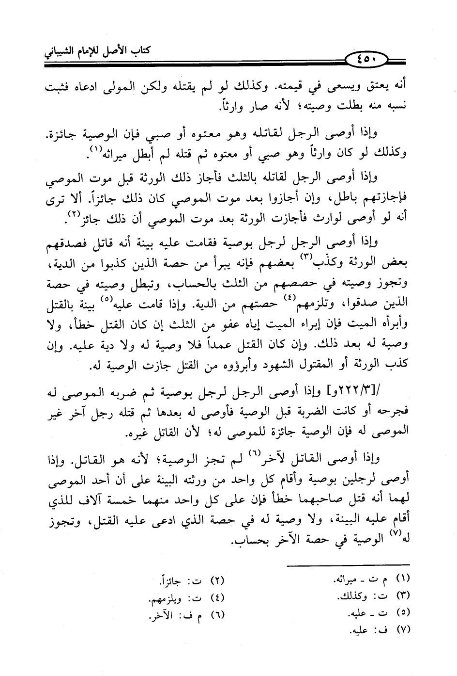 وإذا أوصى الرجل لقاتله وهو معتوه أو صبي فإن الوصية جائزة. وكذلك لو كان وارثاً وهو صبي أو معتوه ثم قتله لم أبطل ميراثه (¬1).