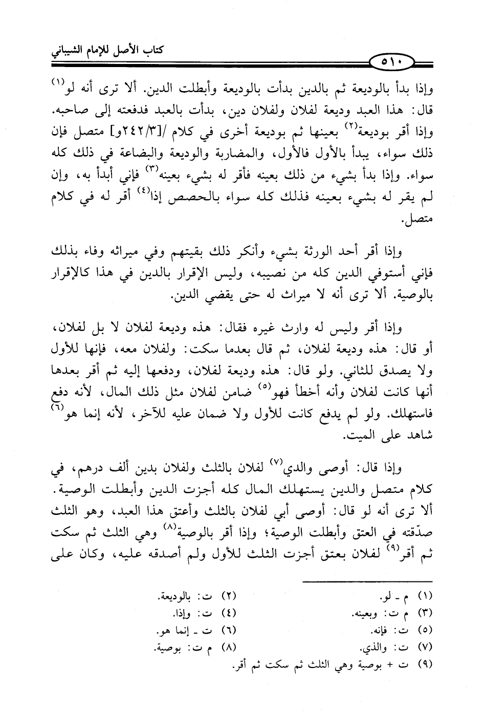 (¬9) ت + بوصية وهي الثلث ثم سكت ثم أقر.