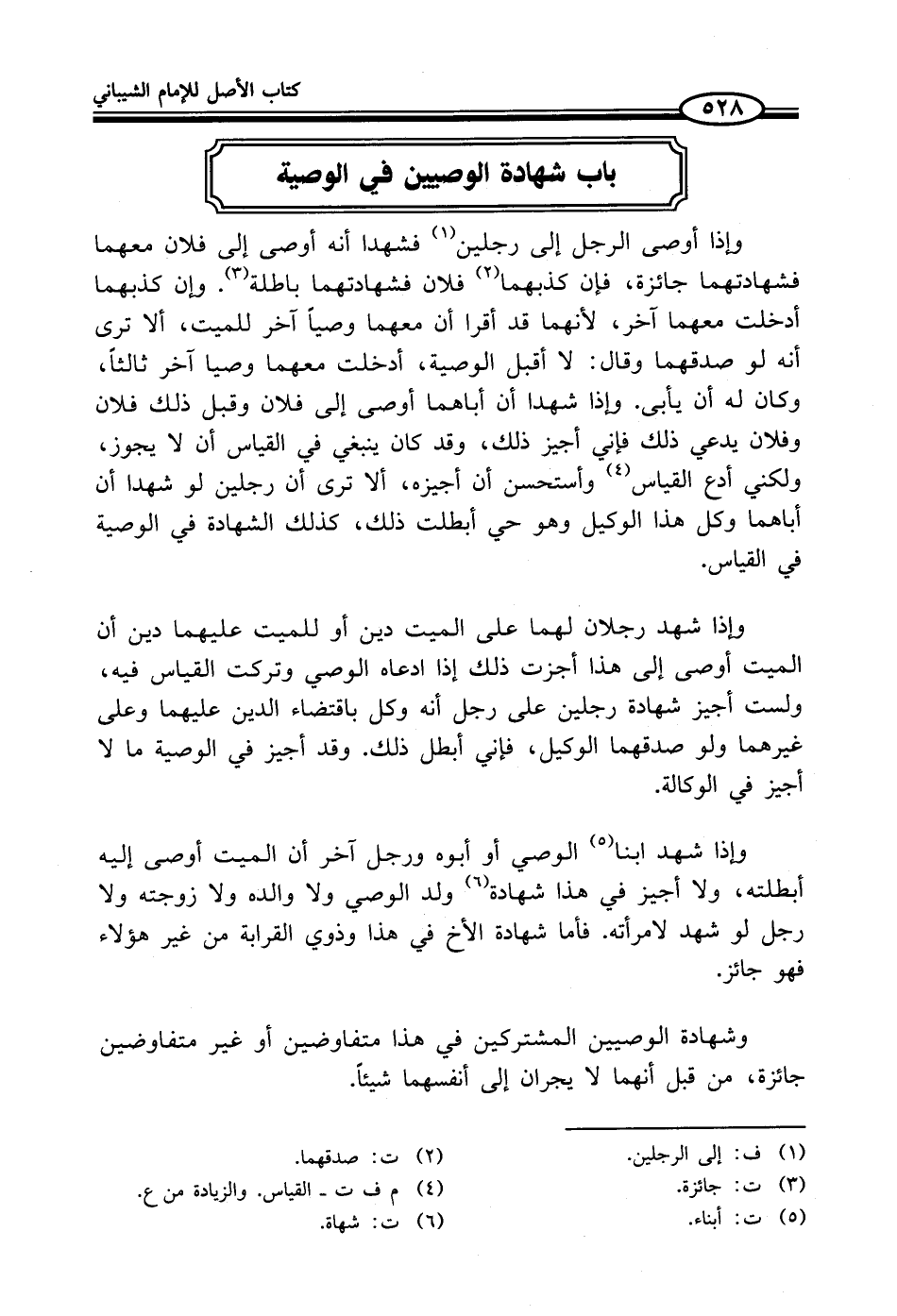 وإذا أوصى الرجل إلى رجلين (¬1) فشهدا أنه أوصى إلى فلان معهما فشهادتهما جائزة، فإن كذبهما (¬2) فلان فشهادتهما باطلة (¬3). وإن كذبهما أدخلت معهما آخر، لأنهما قد أقرا أن معهما وصياً آخر للميت، ألا ترى أنه لو صدقهما وقال: لا أقبل الوصية، أدخلت معهما وصيا آخر ثالثًا، وكان له أن يأبى. وإذا شهدا أن أباهما أوصى إلى فلان وقبل ذلك فلان وفلان يدعي ذلك فإني أجيز ذلك، وقد كان ينبغي في القياس أن لا يجوز، ولكني أدع القياس (¬4) وأستحسن أن أجيزه، ألا ترى أن رجلين لو شهدا أن أباهما وكل هذا الوكيل وهو حي أبطلت ذلك، كذلك الشهادة في الوصية في القياس.