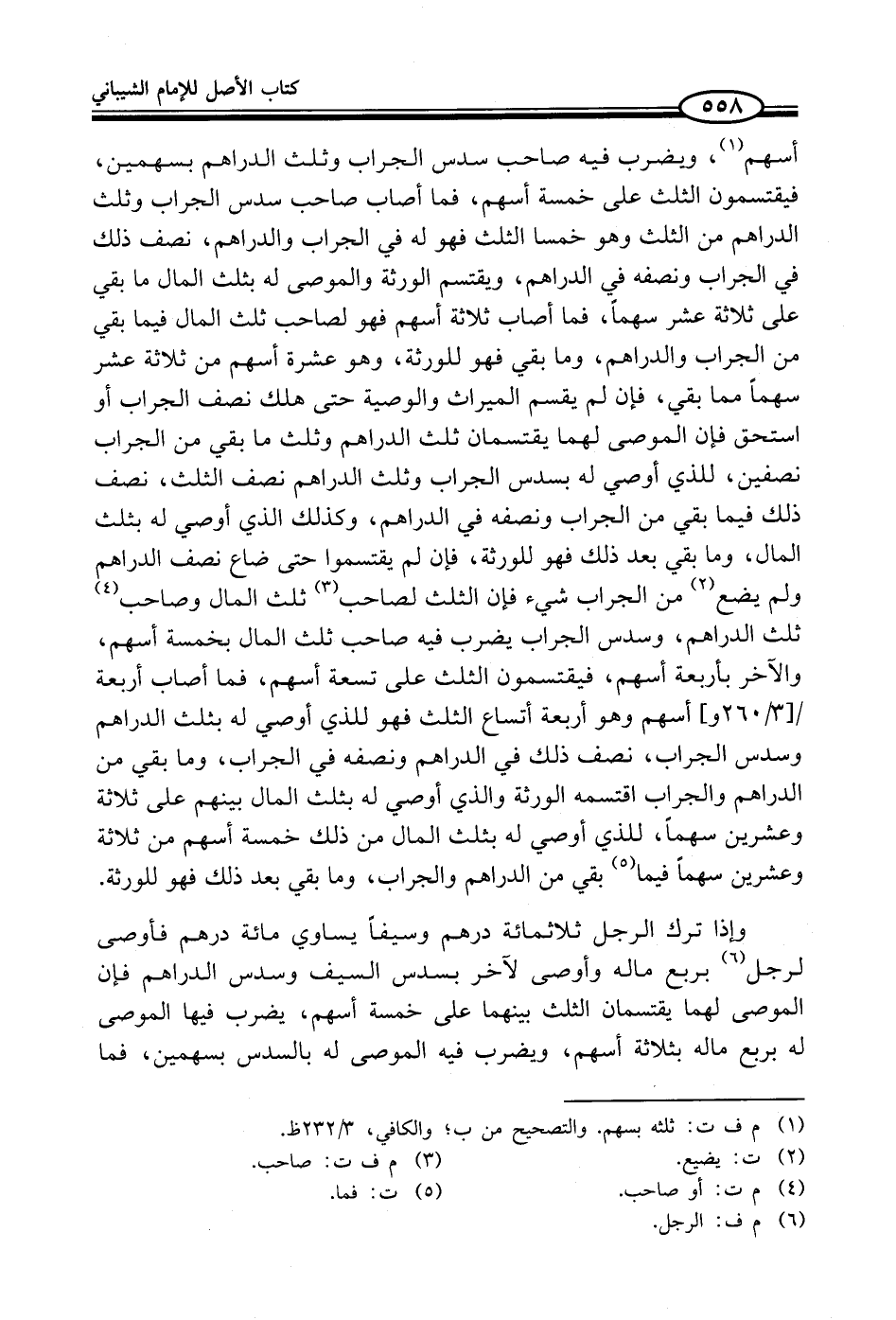 (¬1) م ف ت: ثلثه بسهم. والتصحيح من ب؛ والكافي، 3/ 232 ظ.