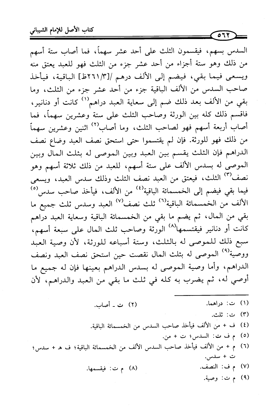 (¬6) م + من الألف فيأخذ صاحب السدس الألف من الخمسمائة الباقية؛ ف هـ + سدس؛ ت + سدس.