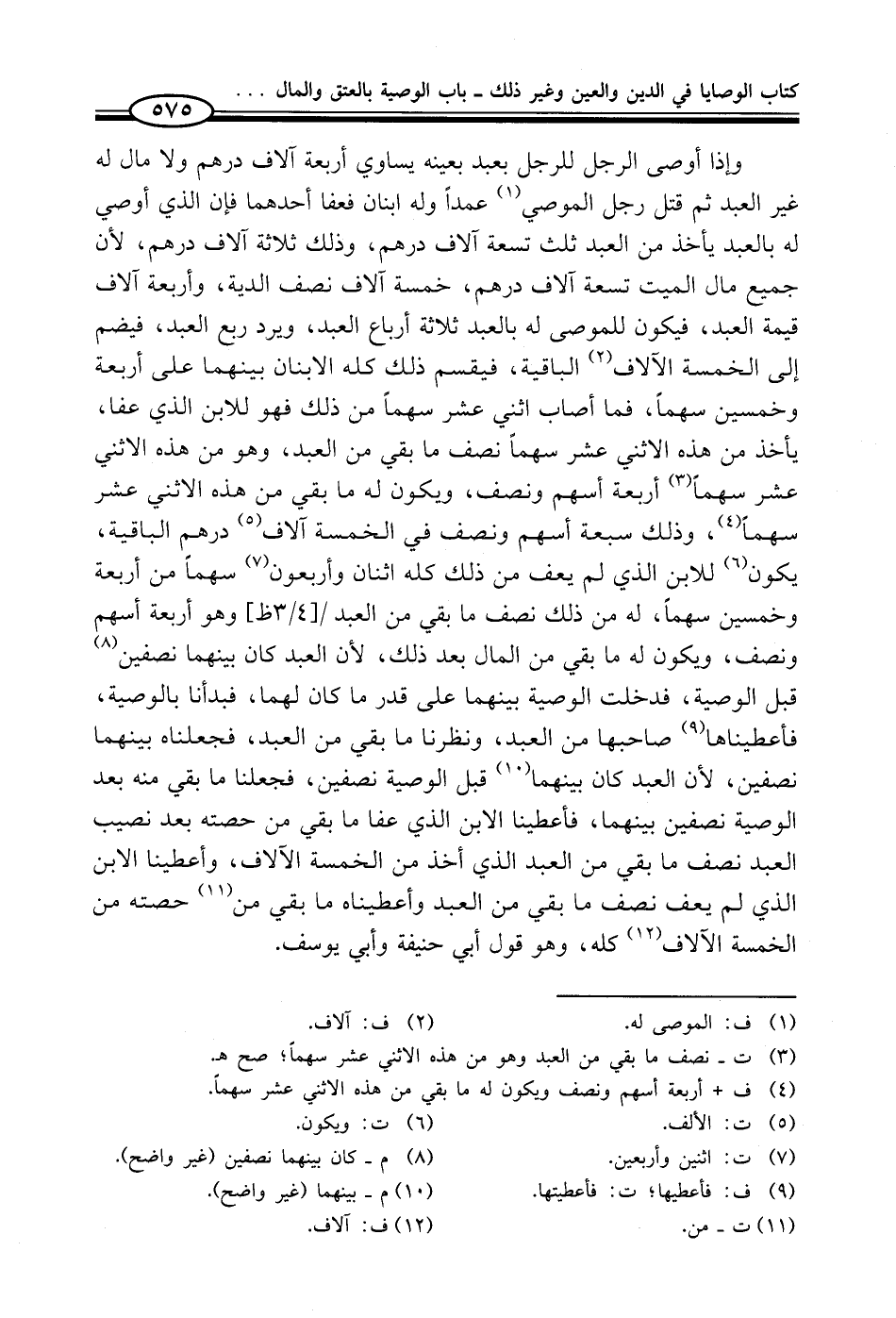 (¬3) ت - نصف ما بقي من العبد وهو من هذه الاثني عشر سهماً؛ صح هـ.