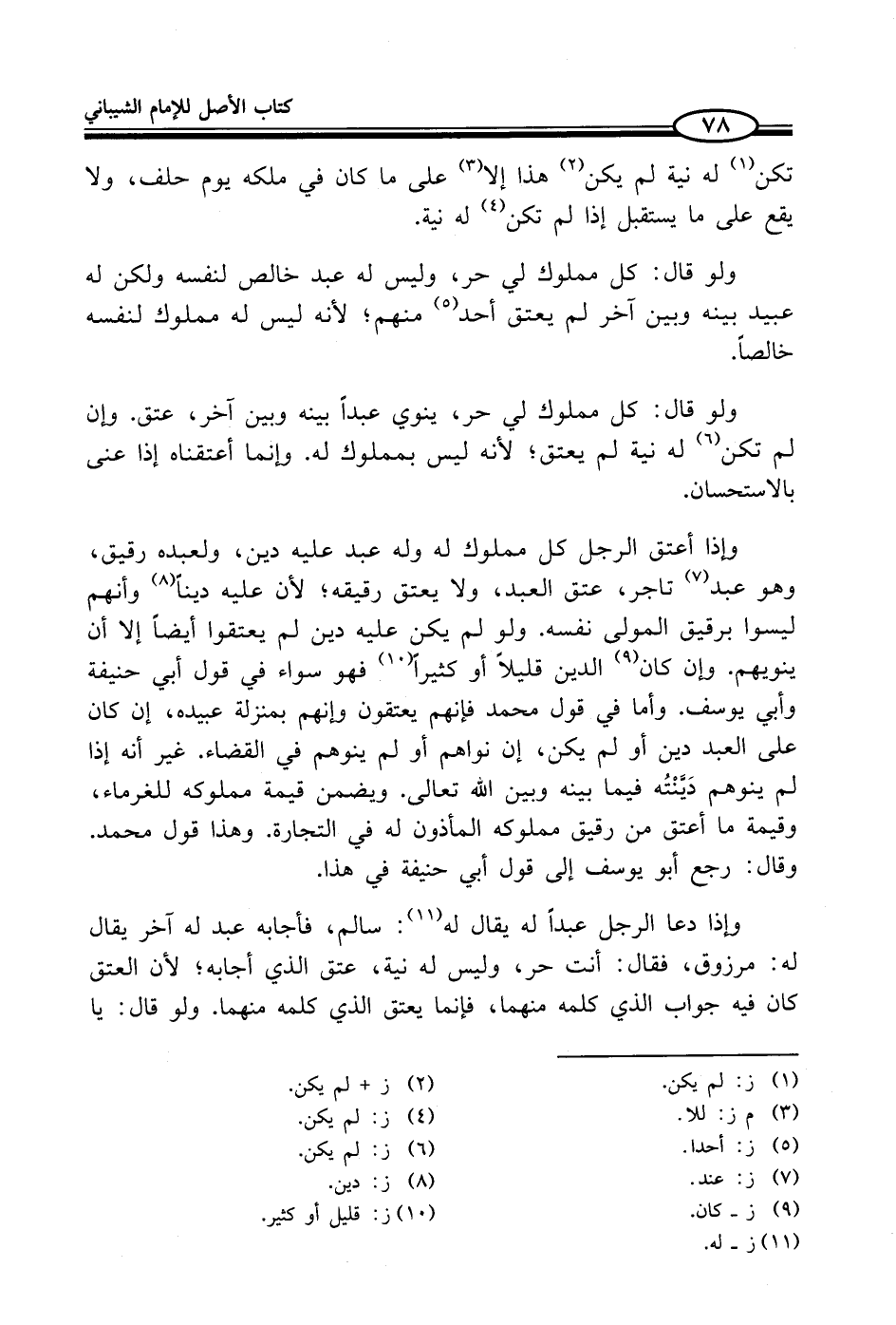 وإذا دعا الرجل عبداً له يقال له (¬11): سالم، فأجابه عبد له آخر يقال له: مرزوق، فقال: أنت حر، وليس له نية، عتق الذي أجابه؛ لأن العتق كان فيه جواب الذي كلمه منهما، فإنما يعتق الذي كلمه منهما. ولو قال: يا