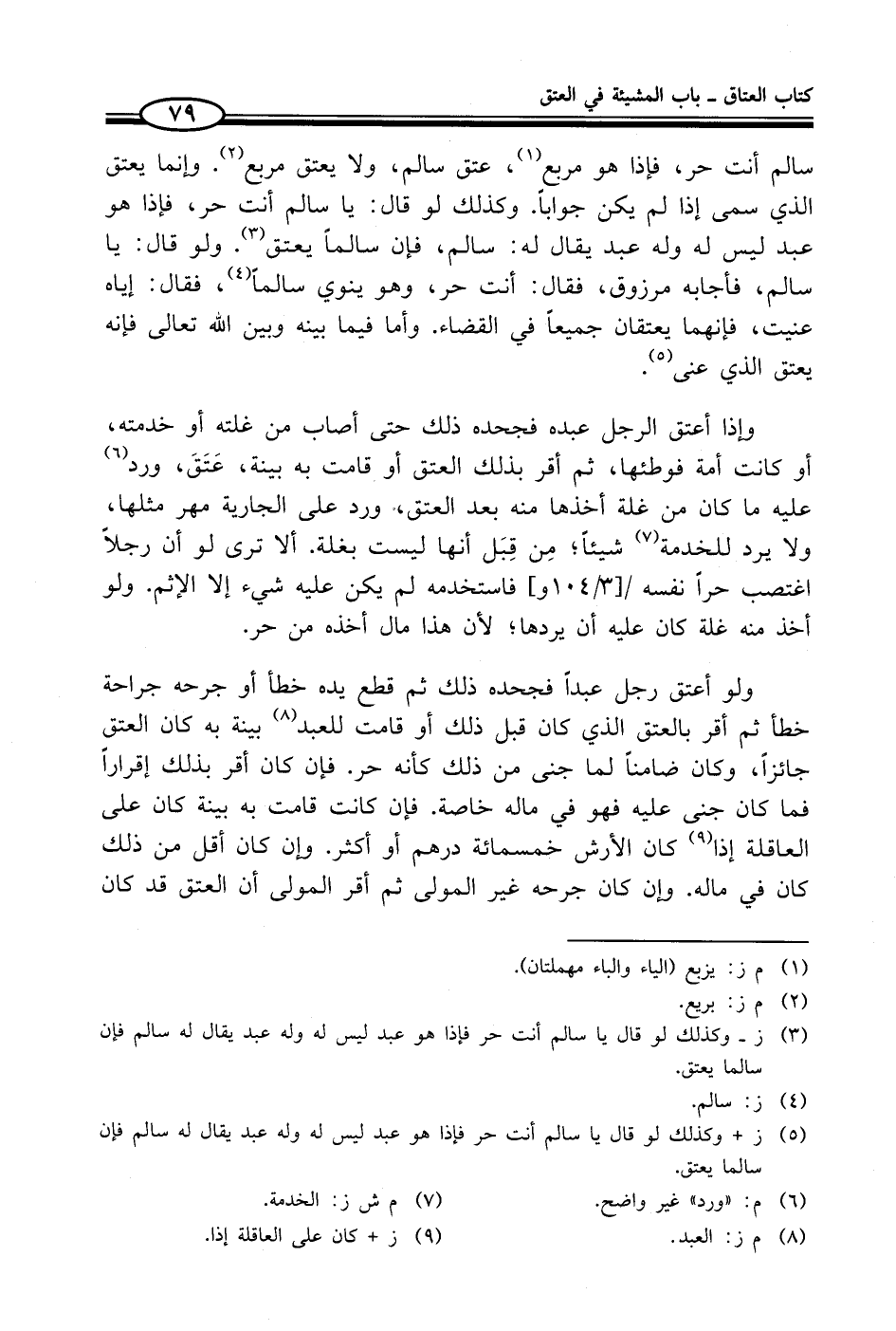 (¬3) ز - وكذلك لو قال يا سالم أنت حر فإذا هو عبد ليس له وله عبد يقال له سالم فإن سالما يعتق.