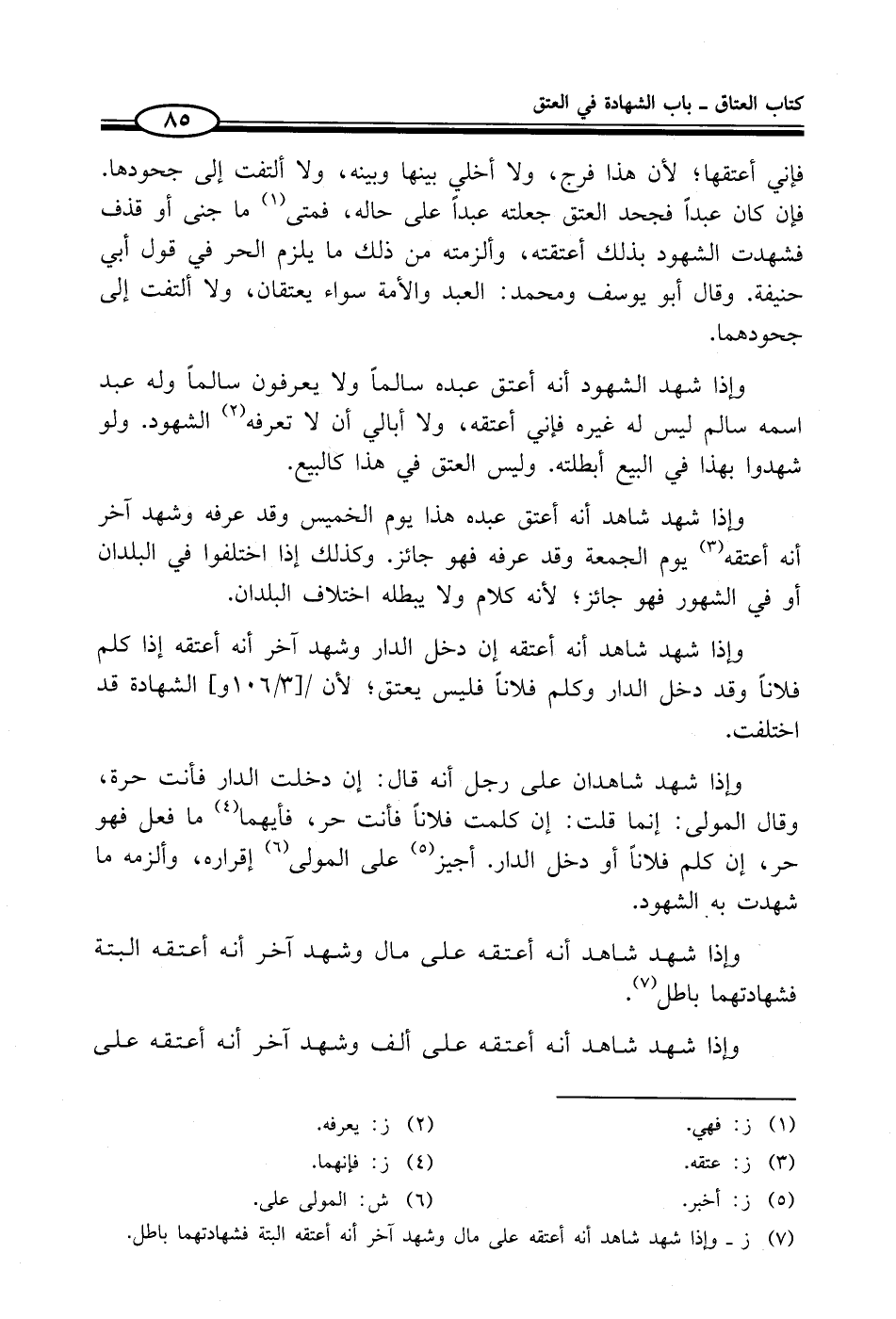 (¬7) ز - وإذا شهد شاهد أنه أعتقه على مال وشهد آخر أنه أعتقه البتة فشهادتهما باطل.