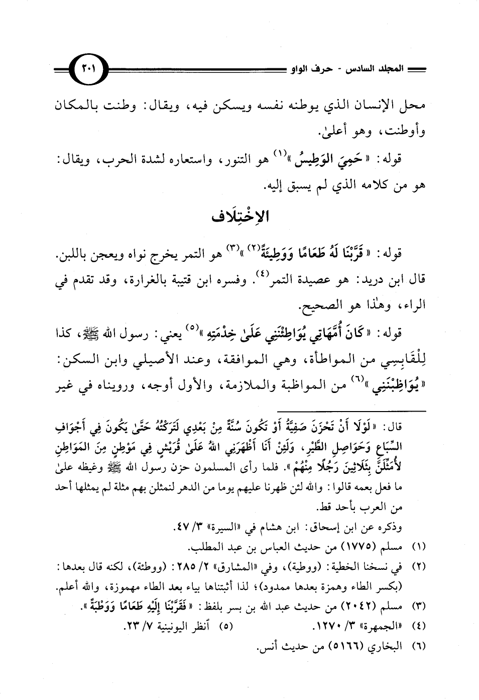 (¬2) في نسخنا الخطية: (ووطية)، وفي "المشارق" 2/ 285: (ووطئة)، لكنه قال بعدها: (بكسر الطاء وهمزة بعدها ممدود)؛ لذا أثبتناها بياء بعد الطاء مهموزة، والله أعلم.