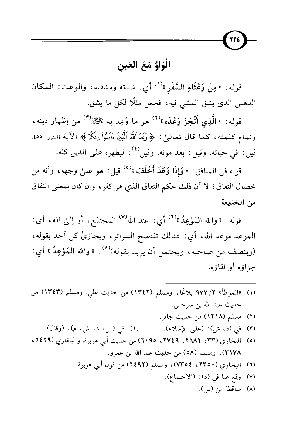 قوله: "مِنْ وَعْثَاءِ السَّفَرِ" (¬1) أي: شدته ومشقته، والوعث: المكان الدهس الذي يشق المشي فيه، فجعل مثلًا لكل ما يشق.