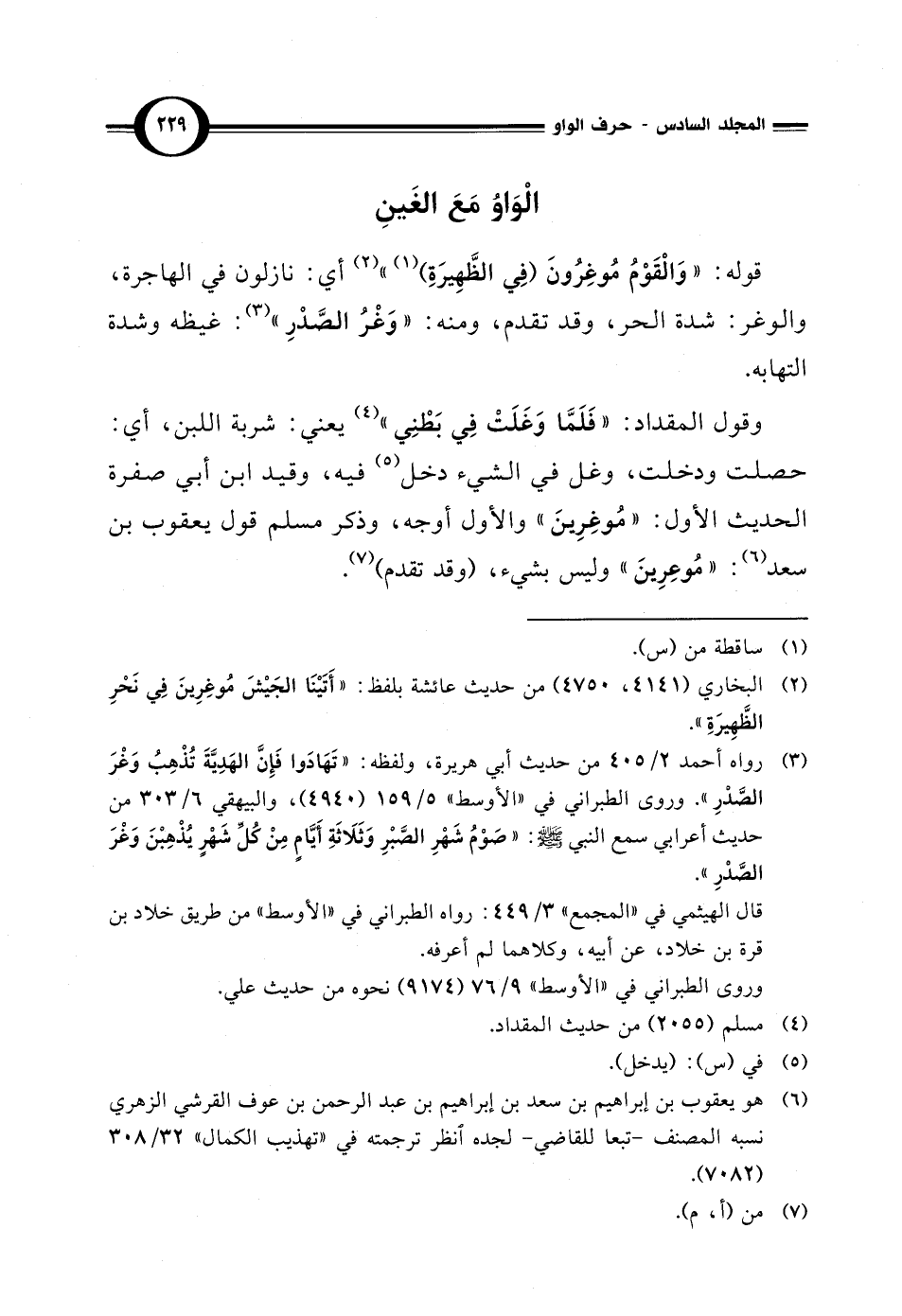 وقول المقداد: "فَلَمَّا وَغَلَتْ في بَطْنِي" (¬4) يعني: شربة اللبن، أي: حصلت ودخلت، وغل في الشيء دخل (¬5) فيه، وقيد ابن أبي صفرة الحديث الأول: "مُوغِرِينَ" والأول أوجه، وذكر مسلم قول يعقوب بن سعد (¬6): "مُوعِرِينَ" وليس بشيء، (وقد تقدم) (¬7).