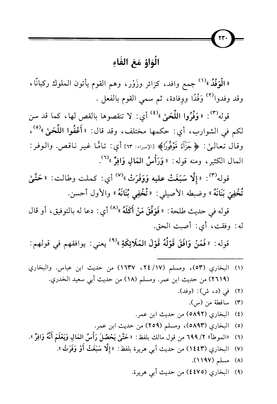 (¬7) البخاري (1443) من حديث أبي هريرة بلفظ: "إِلَّا سَبَغَتْ أَوْ وَفَرَتْ".