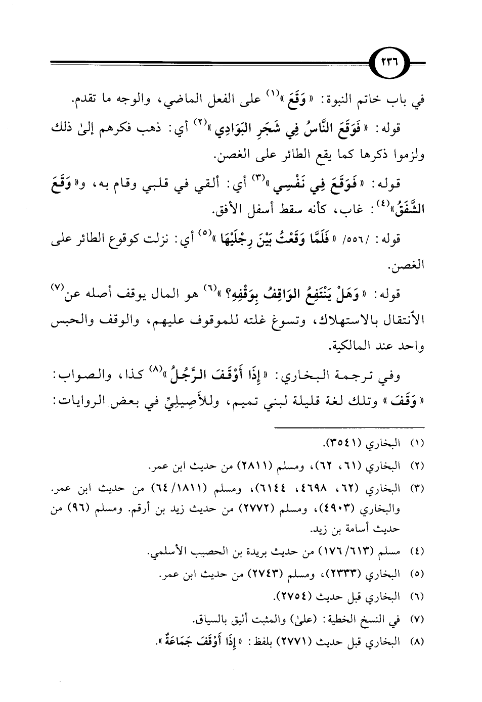 وفي ترجمة البخاري: "إِذَا أَوْقَفَ الرَّجُلُ" (¬8) كذا، والصواب: "وَقَفَ" وتلك لغة قليلة لبني تميم، وللأَصِيلِيِّ في بعض الروايات: