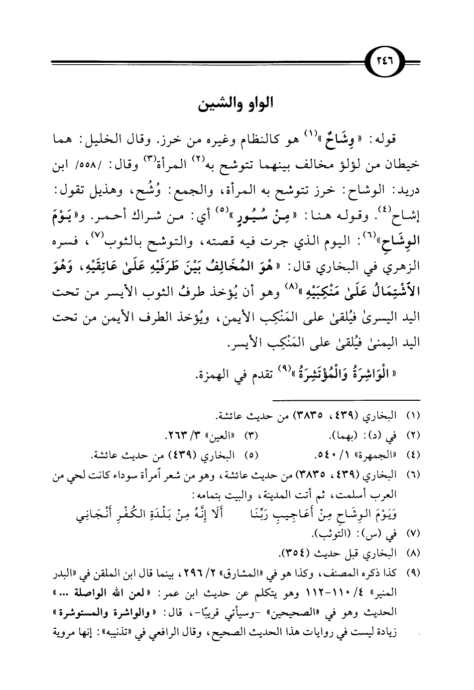 "الْوَاشِرَةُ وَالْمُؤْتَشِرَةُ" (¬9) تقدم في الهمزة.
