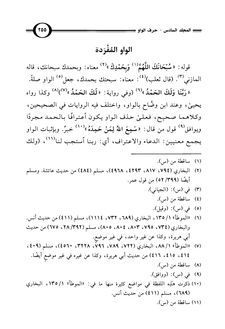 (¬10) ذكرت هذه اللفظة في مواضع كثيرة منها ما في: "الموطأ" 1/ 135، البخاري (689)، مسلم (411) من حديث أنس.