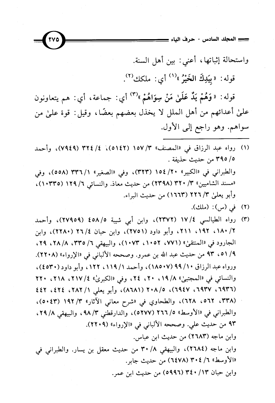 قوله: " وَهُمْ يَدٌ عَلَى مَنْ سِوَاهُمْ" (¬3) أي: جماعة، أي: هم يتعاونون علئ أعدائهم من أهل الملل لا يخذل بعضهم بعضًا، وقيل: قوة على من سواهم. وهو راجع إلى الأول.