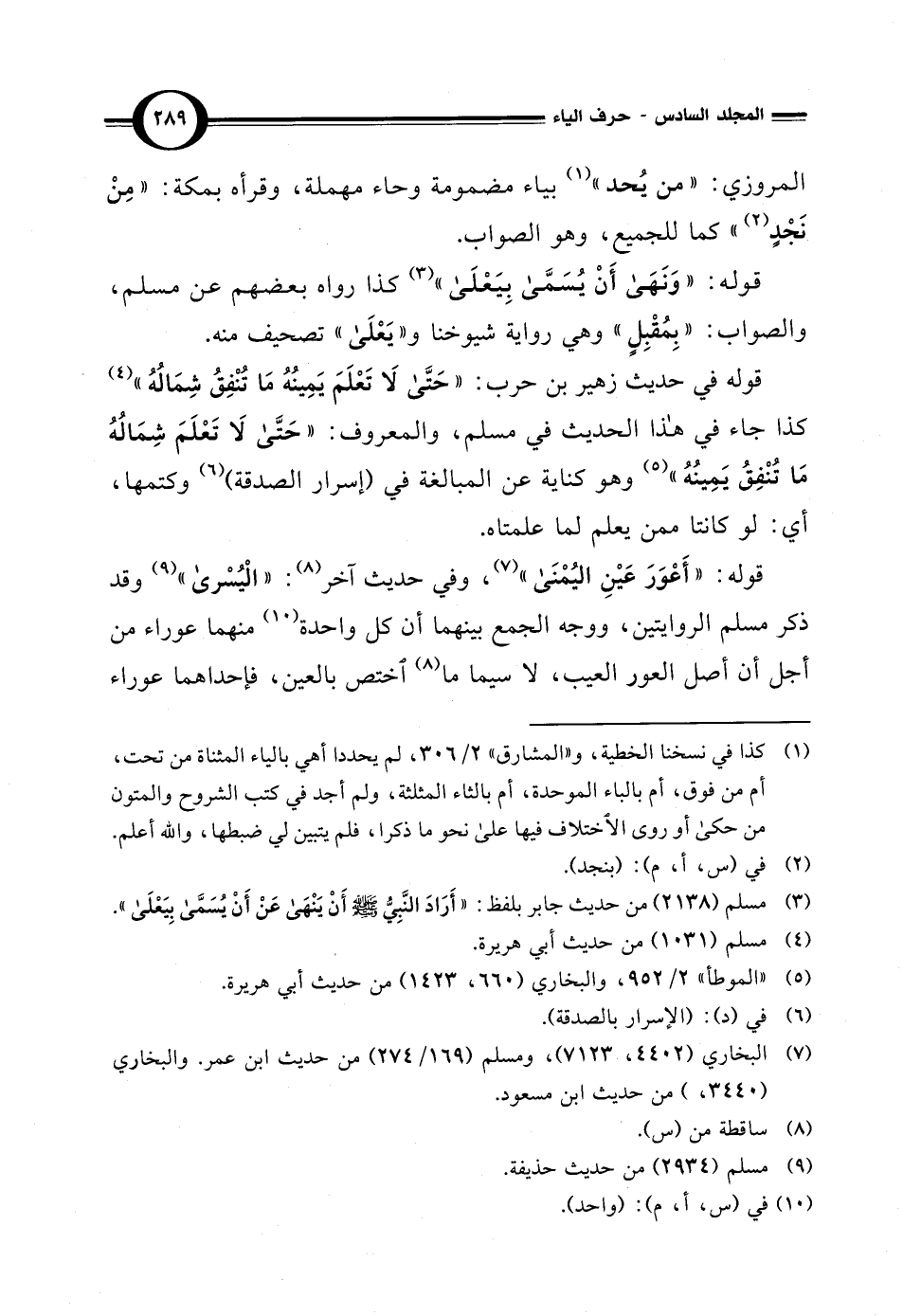 (¬1) كذا في نسخنا الخطية، و"المشارق" 2/ 306، لم يحددا أهي بالياء المثناة من تحت، أم من فوق، أم بالباء الموحدة، أم بالثاء المثلثة، ولم أجد في كتب الشروح والمتون من حكى أو روى الاختلاف فيها على نحو ما ذكرا، فلم يتبين لي ضبطها، والله أعلم.