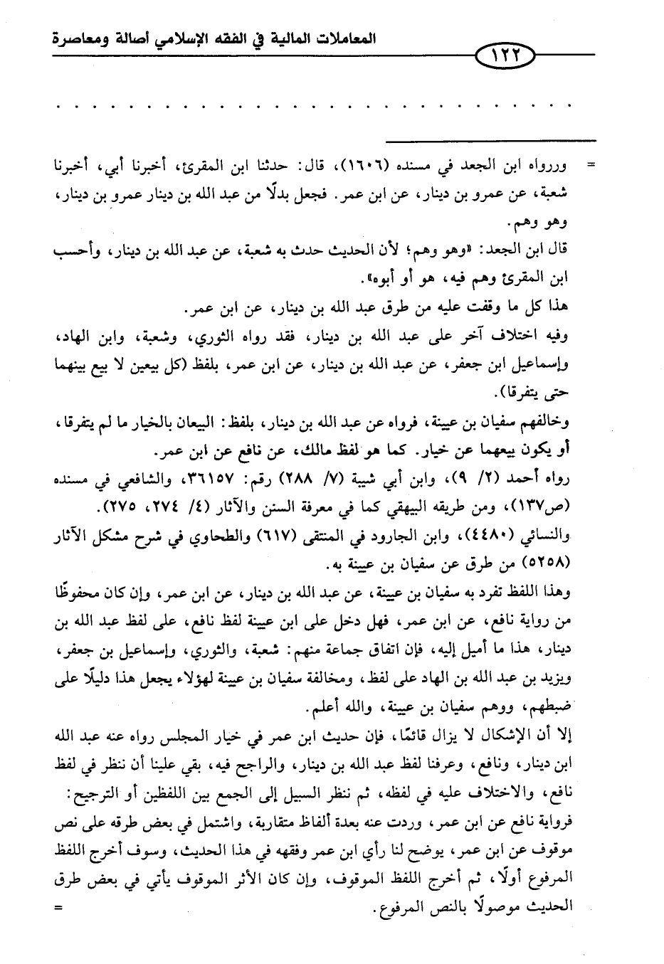وهذا اللفظ تفرد به سفيان بن عيينة، عن عبد الله بن دينار، عن ابن عمر، وإن كان محفوظًا من رواية نافع، عن ابن عمر، فهل دخل على ابن عيينة لفظ نافع، على لفظ عبد الله بن دينار، هذا ما أميل إليه، فإن اتفاق جماعة منهم: شعبة، والثوري، وإسماعيل بن جعفر، ويزيد بن عبد الله بن الهاد على لفظ، ومخالفة سفيان بن عيينة لهؤلاء يجعل هذا دليلاً على ضبطهم، ووهم سفيان بن عيينة، والله أعلم.