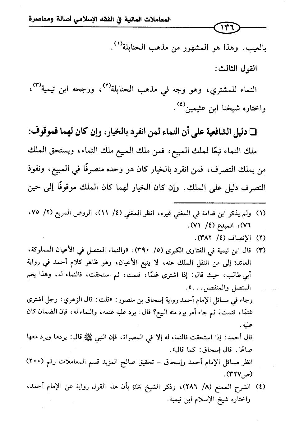 (¬٤) الشرح الممتع (٨/ ٢٨٦)، وذكر الشيخ - رحمه الله - بأن هذا القول رواية عن الإِمام أحمد، واختاره شيخ الإِسلام ابن تيمية.