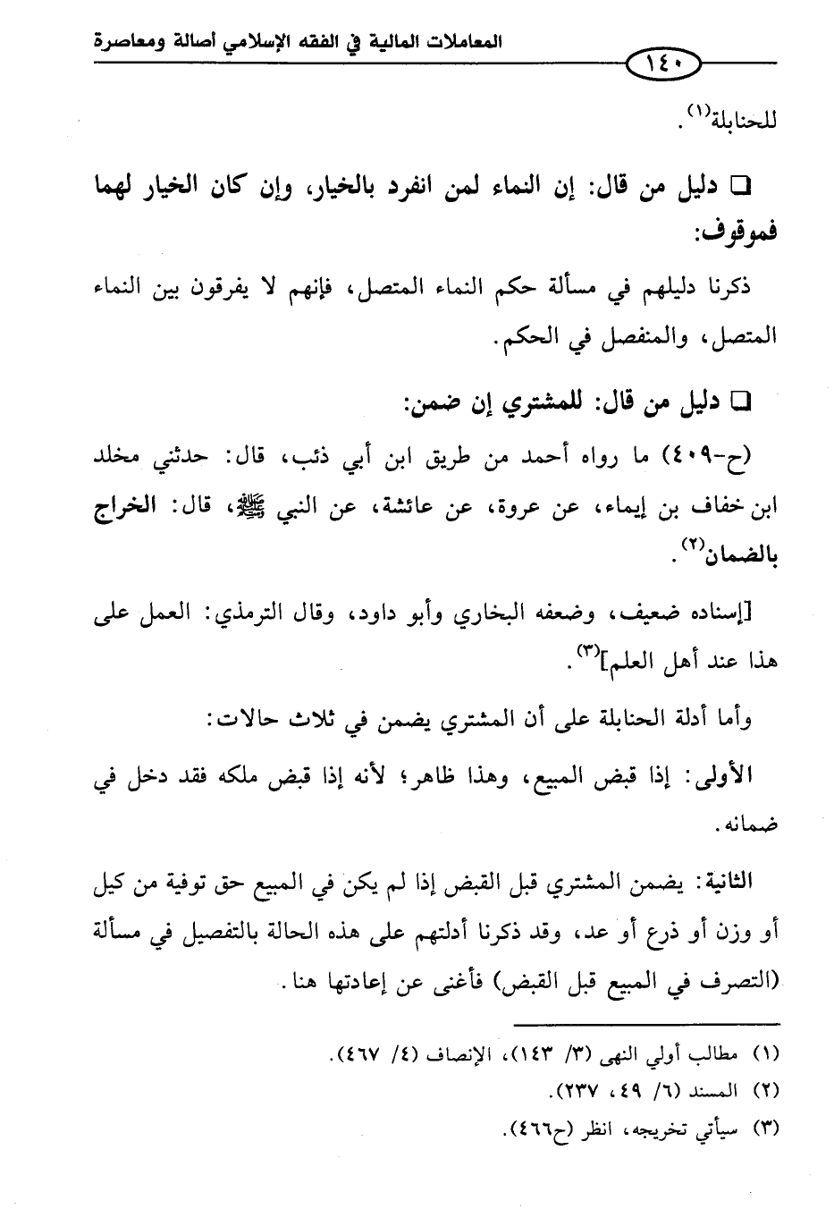 (ح-٤٠٩) ما رواه أحمد من طريق ابن أبي ذئب، قال: حدثني مخلد ابن خفاف بن إيماء، عن عروة، عن عائشة، عن النبي - صلى الله عليه وسلم -، قال: الخراج بالضمان (¬٢).