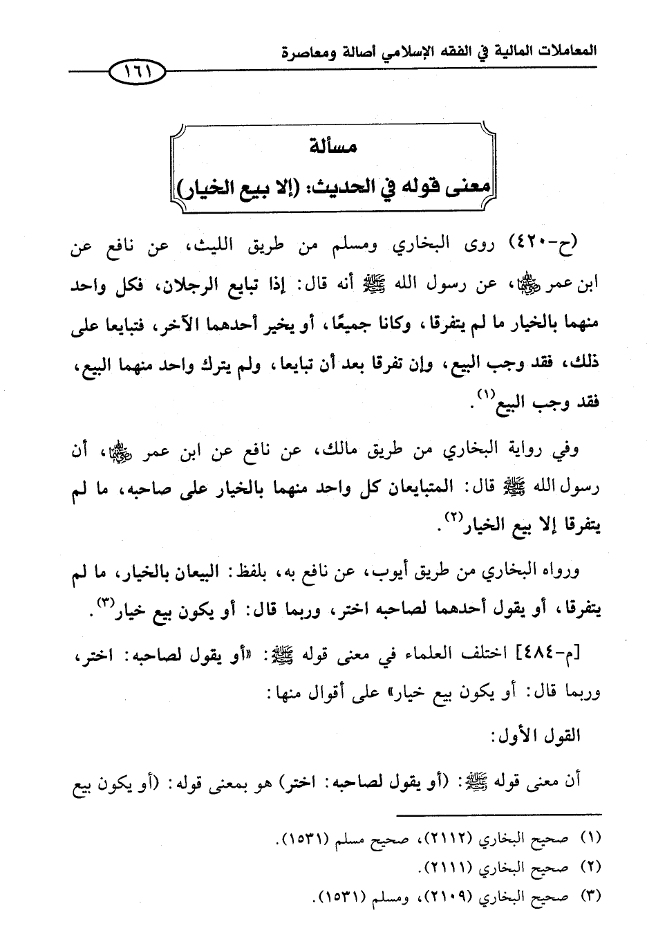 (¬٣) صحيح البخاري (٢١٠٩)، ومسلم (١٥٣١).
