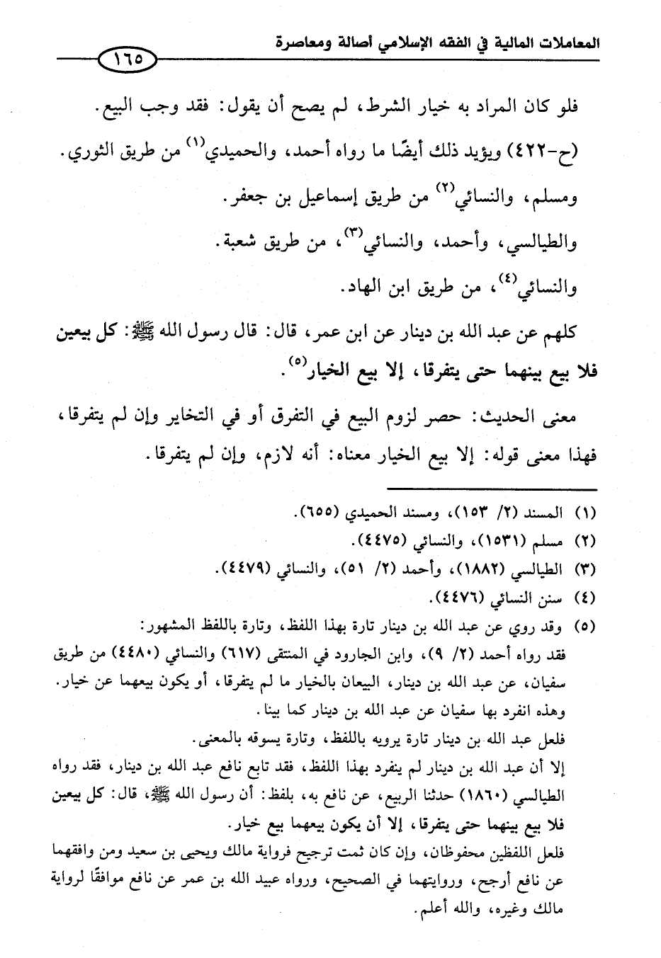 كلهم عن عبد الله بن دينار عن ابن عمر، قال: قال رسول الله - صلى الله عليه وسلم -: كل بيعين فلا بيع بينهما حتى يتفرقا، إلا بيع الخيار (¬٥).