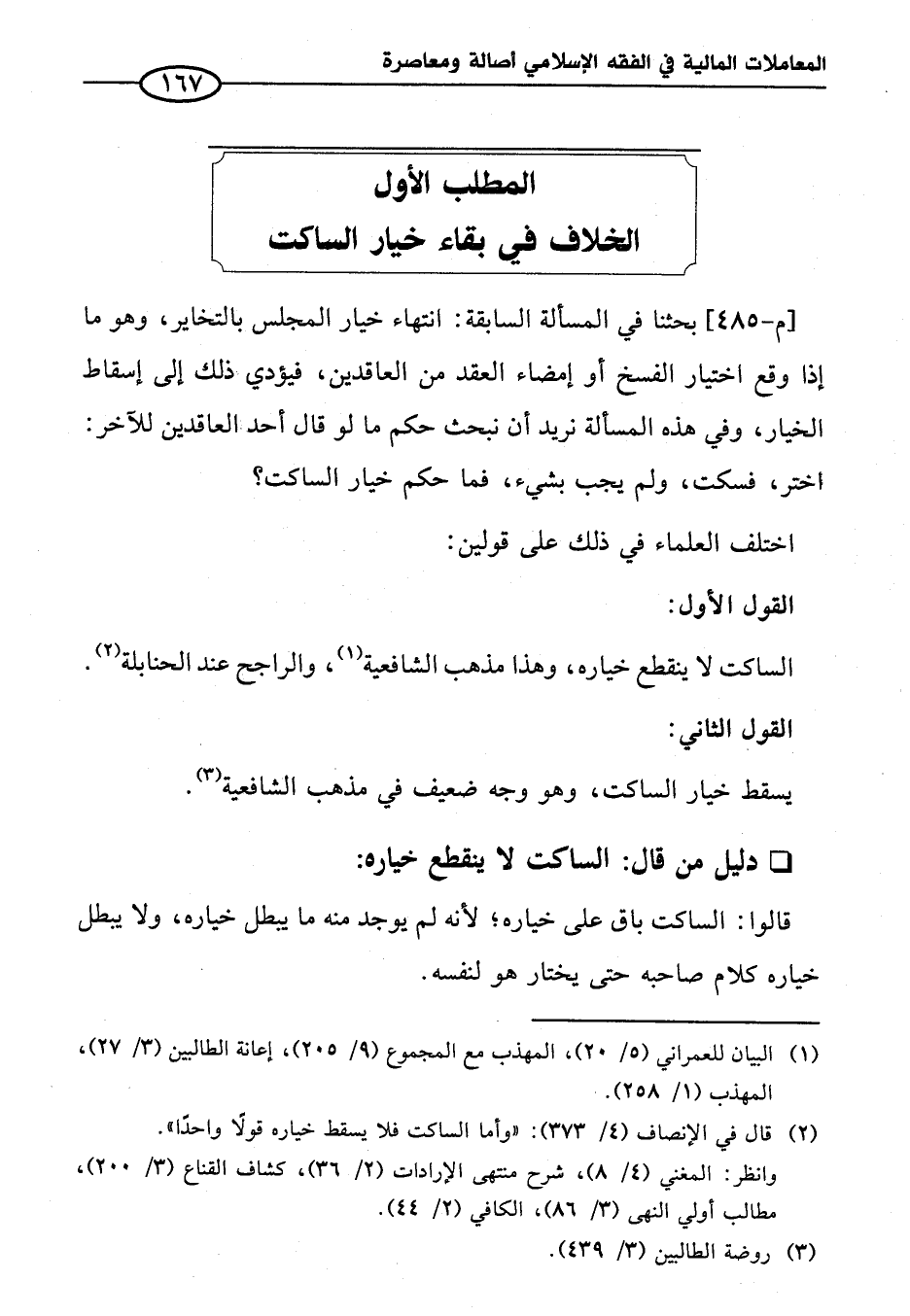 المطلب الأول الخلاف في بقاء خيار الساكت