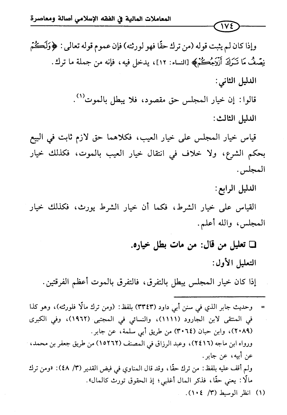 إذا كان خيار المجلس يبطل بالتفرق، فالتفرق بالموت أعظم الفرقتين.