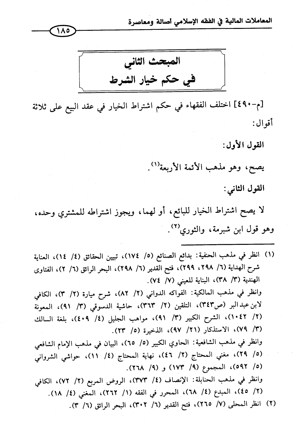 المبحث الثاني في حكم خيار الشرط