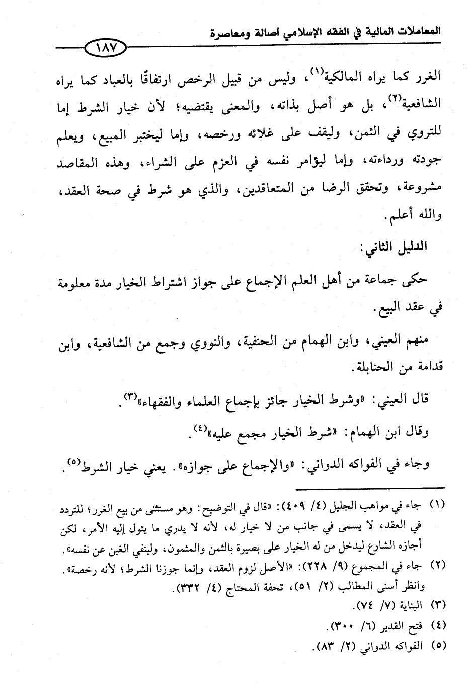 وجاء في الفواكه الدواني: "والإجماع على جوازه". يعني خيار الشرط (¬٥).