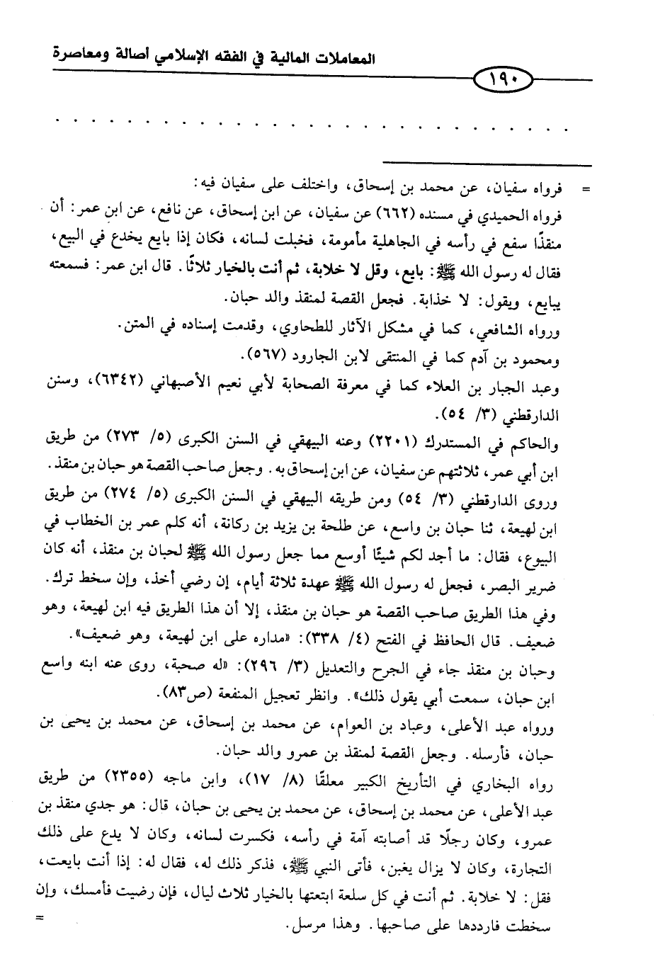 وروى الدارقطني (٣/ ٥٤) ومن طريقه البيهقي في السنن الكبرى (٥/ ٢٧٤) من طريق ابن لهيعة، ثنا حبان بن واسع، عن طلحة بن يزيد بن ركانة، أنه كلم عمر بن الخطاب في البيوع، فقال: ما أجد لكم شيئًا أوسع مما جعل رسول الله - صلى الله عليه وسلم - لحبان بن منقذ، أنه كان ضرير البصر، فجعل له رسول الله - صلى الله عليه وسلم - عهدة ثلاثة أيام، إن رضي أخذ، وإن سخط ترك. وفي هذا الطريق صاحب القصة هو حبان بن منقذ، إلا أن هذا الطريق فيه ابن لهيعة، وهو ضعيف. قال الحافظ في الفتح (٤/ ٣٣٨): "مداره على ابن لهيعة، وهو ضعيف".