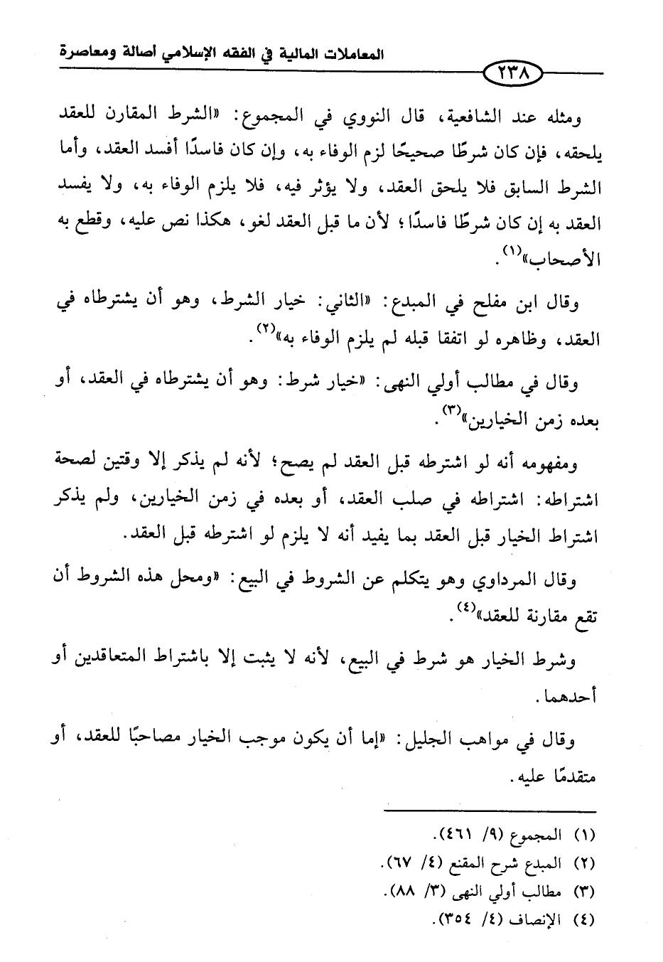 وقال في مطالب أولي النهى: "خيار شرط: وهو أن يشترطاه في العقد، أو بعده زمن الخيارين" (¬٣).