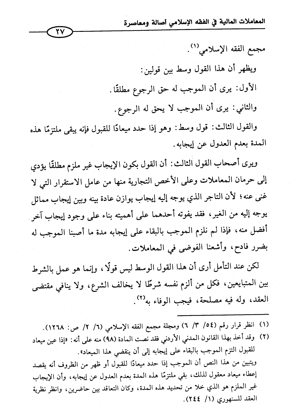(¬١) انظر قرار رقم (٥٤/ ٣/ ٦) ومجلة مجمع الفقه الإِسلامي (٦/ ٢/ ص: ١٢٦٨).